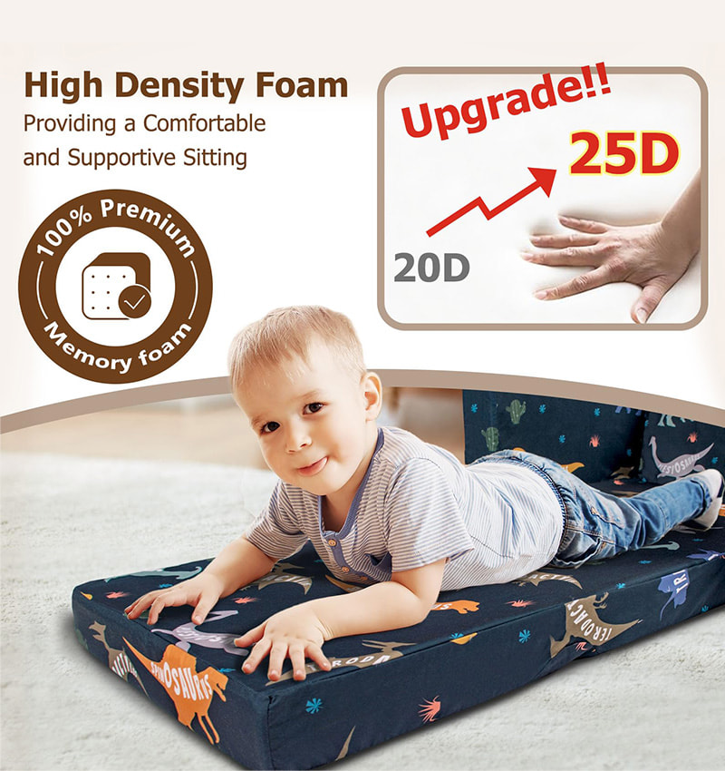2-in-1 Dinosaur Foam Kids Couch - Flipout Lounge Pad