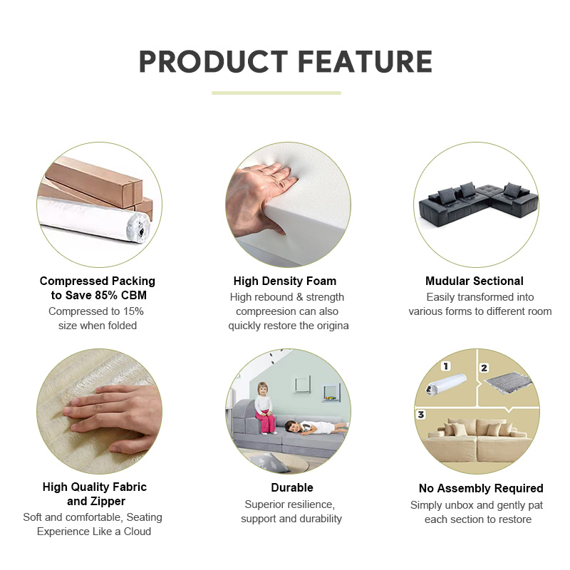 This innovative design is ideal for e-commerce and international shipping, helping to reduce logistical challenges and transportation costs. Additionally, its compressible nature makes it easy for homeowners to store or reposition the sofa when extra space is needed temporarily.