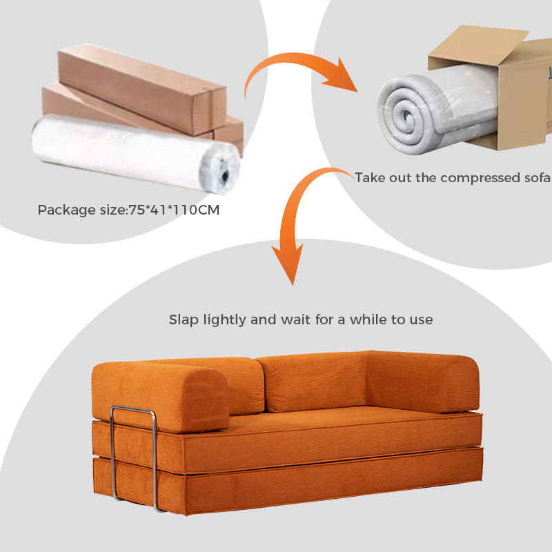 At the heart of every compressed sofa is vacuum compression technology.This process removes excess air from high-density foam and securely wraps the sofa body in protective films, allowing it to be folded or rolled into a compact box.The result? A full-size sofa that’s easy to transport, store, and handle — all while maintaining its shape and comfort once decompressed.
