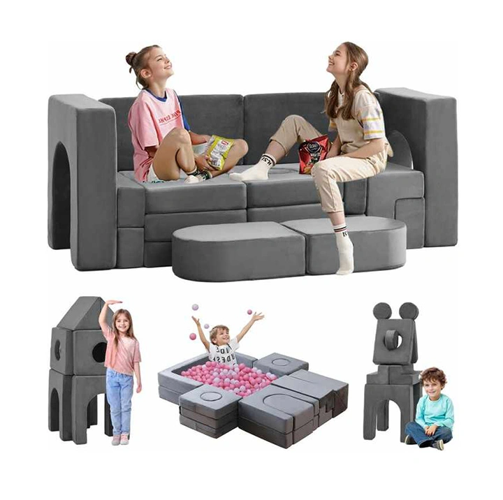 This 22-piece modular play couch features 8 shapes and 1,000+ configurations for endless creative play. Made with certified safe materials, high-resilience foam, and waterproof velvet fabric, it grows with kids ages 1–16. Easy to clean and quick to expand after unpacking.
