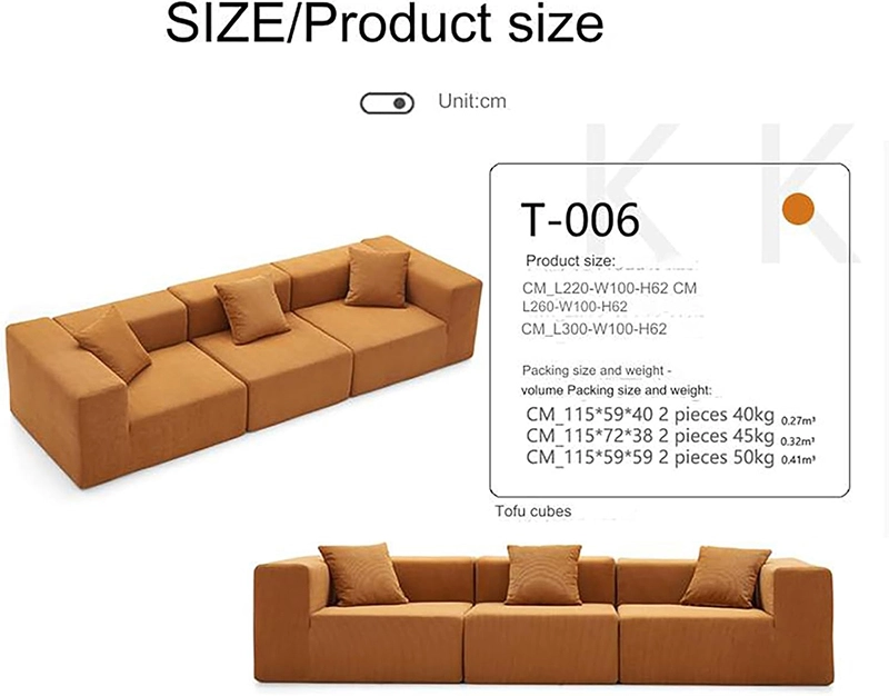 Experience ultimate comfort with this custom modular combination 220-300cm corduroy sofa, featuring high-density rebound sponge cushions for vacuum compressed packing, skin-friendly wrinkle-resistant fabric, and modern versatile design. No assembly required - perfect for living rooms, bedroom, hotels, salon.