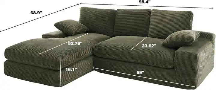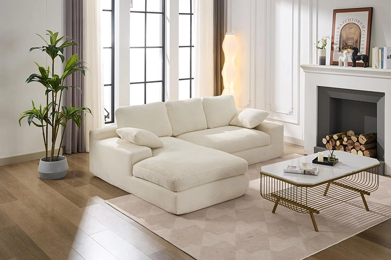 Crafted with upgraded wrinkle-resistant corduroy fabric, this corner sofa prioritizes both comfort and material quality. The refined texture adds a sophisticated touch to any home. Supported by a foam structure and durable springs, it offers long-lasting comfort and resilience. Pair it with soft, durable pillows to create an elegant and inviting living environment.