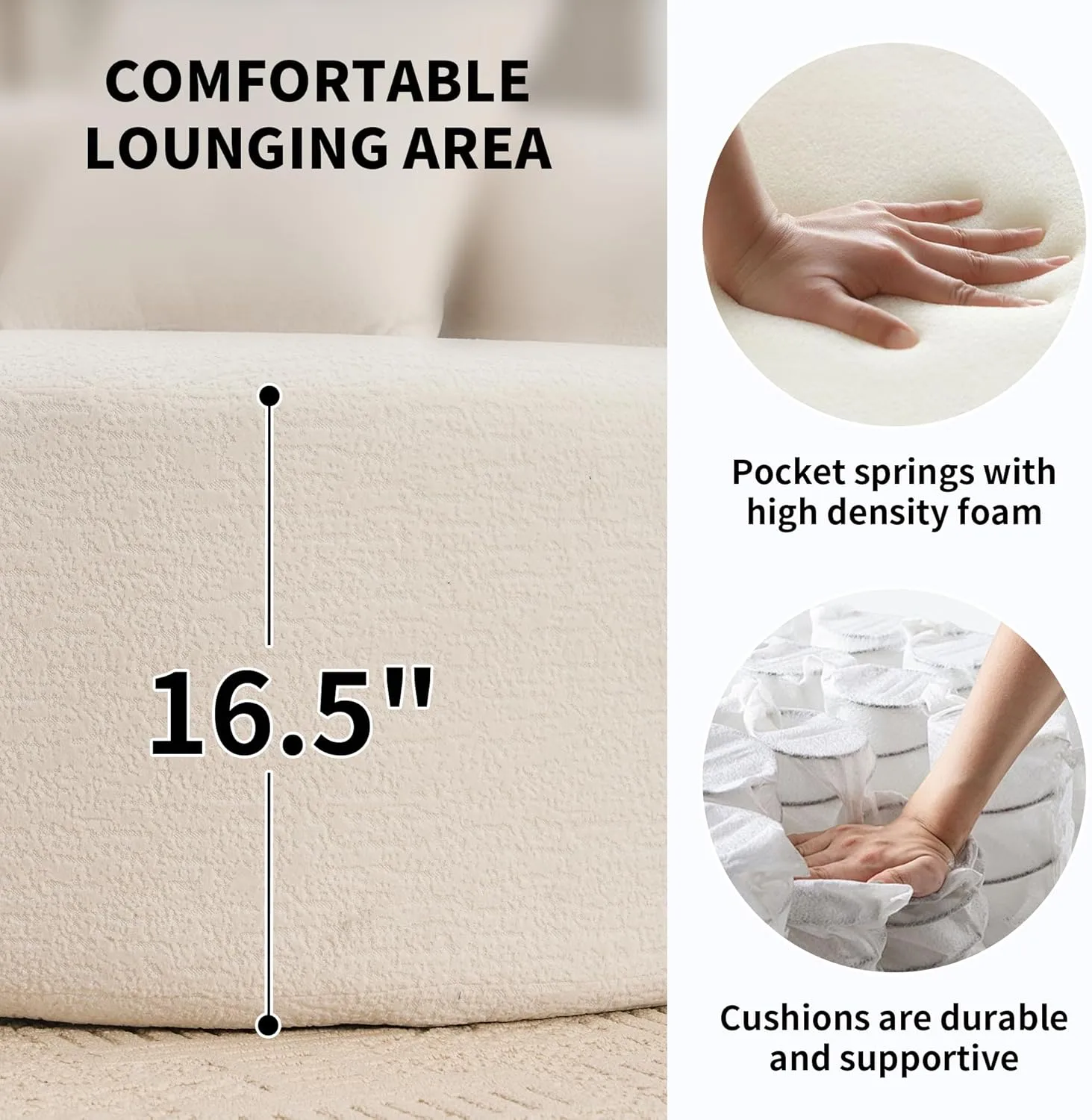 Enjoy a cloud-like seating experience with a sponge and spring combination structure that ensures lasting support and plush softness. Featuring a 23.6-inch deep seat and smooth rounded curves, this sofa is perfect for lounging, napping, or spending quality time with family and pets.