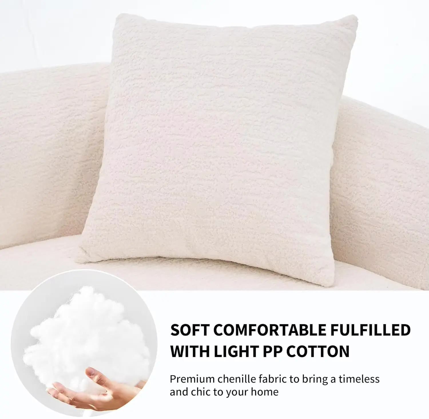 Upholstered in premium chenille fabric, this boneless sofa offers an ultra-soft feel, exceptional durability, and easy maintenance. The wear-resistant material maintains its shape and beauty over time, providing a luxurious and enduring addition to your home.