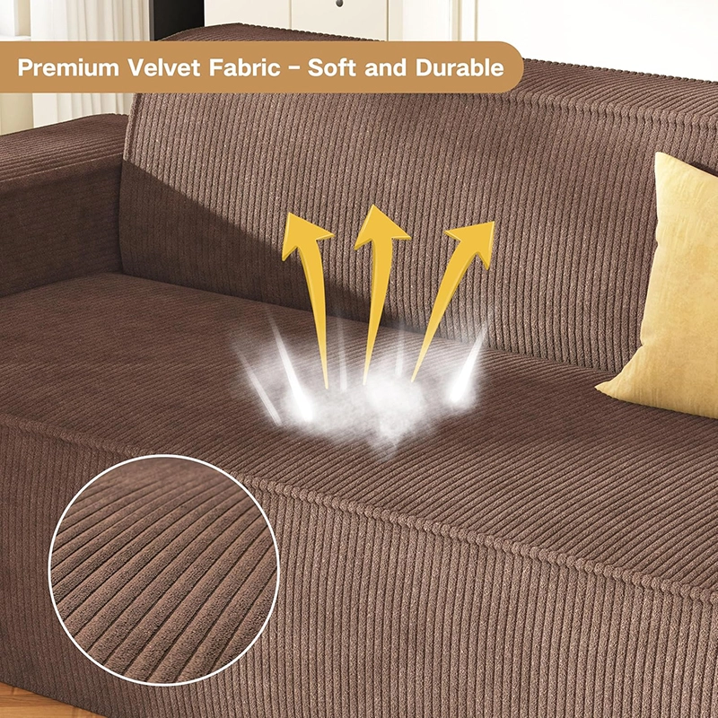 Wrapped in soft, skin-friendly cordury fabric, the sofa brings a luxurious, inviting feel to your space. The durable material is easy to clean, resistant to wear, and retains its elegant look over time—perfect for everyday living.![]()