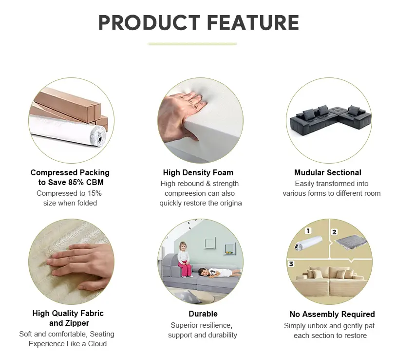 This compression-decompression ability makes the sofa ideal for e-commerce and overseas shipping, reducing logistics costs and simplifying delivery. It also allows homeowners to temporarily store or move the sofa with ease when extra space is needed.
